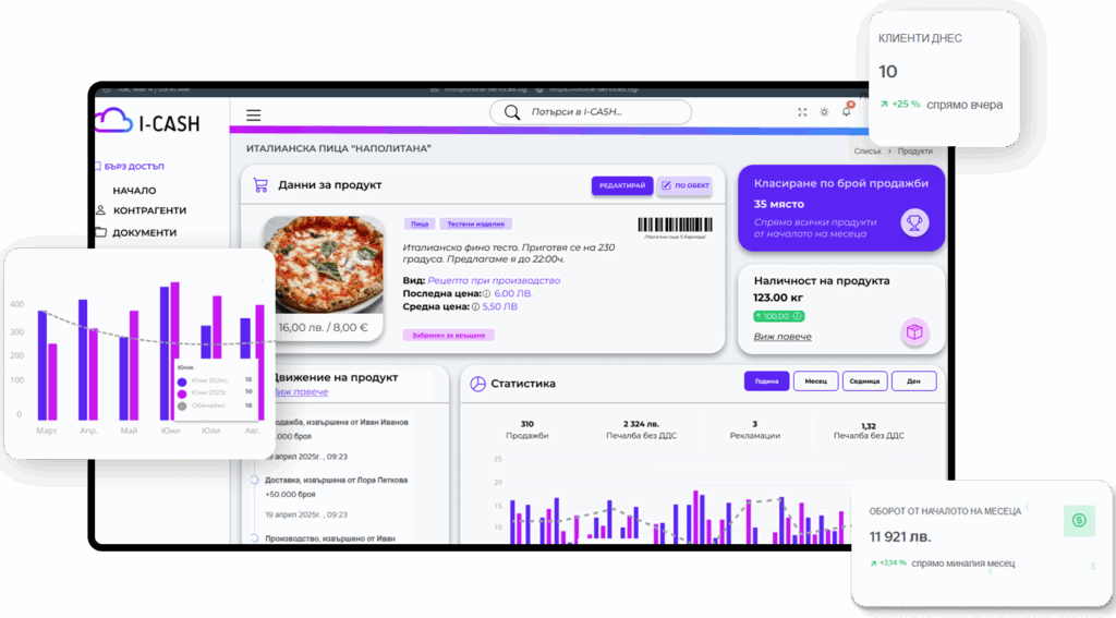 Богата гама от функционалности, които превръщат I-CASH във верен помощник на всеки тип бизнес – от магазини и ресторанти, през обекти на самообслужване, складове и мобилна търговия, до офиси и онлайн магазини.