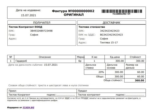 I-CASH Ви дава възможност да създадете документ в момент на продажба. По-подробна информация, относно процеса на продажба с фактура можете да прочете в нашето ръководство за потребителя.