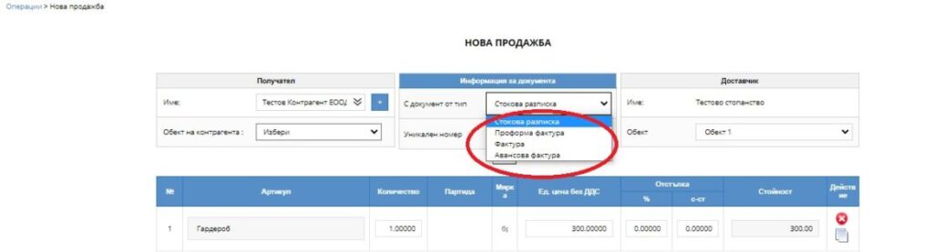 При извършване на авансово плащане е важно да се попълни полето “Сума на авансовата фактура с ДДС”. По този начин генерирате авансова фактура и стокова разписка, които не изваждат стока от склада, но регламентират преплащането.