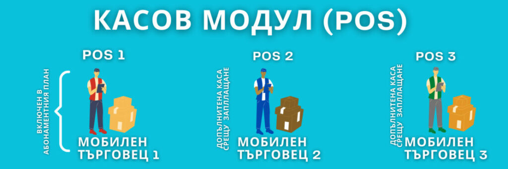 Първият, основен касов модул (каса) е включен във всеки абонаментен план. Чрез заявяване, имате възможност да активирате допълнителни касови модули (каси). Нямате ограничение колко обекта да заявите към едно складово стопанство.