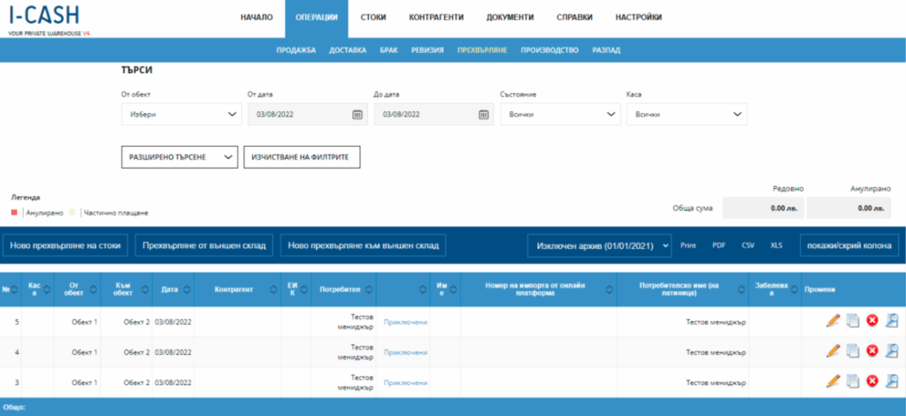 - Препращате всяка операция към уеб интерфейса на I-CASH. По този начин се систематизира и обобщава всяка операция, реализирана на различните касови модули в складовото стопанство.