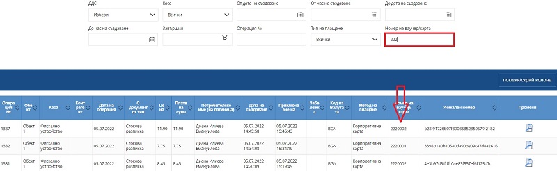 В генаратора на сборни фактури или в списъците с продажби въведете префикса на съответната фирма/компания или карта, за да зареди филтъра само продажбите с този префикс/карта.