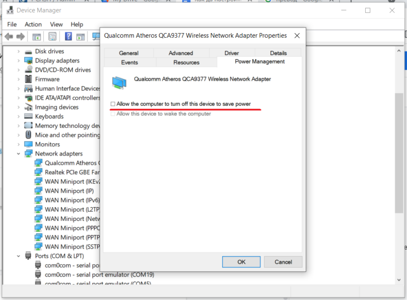 Ако не се ползват известно време те се изключват, което автоматично означава , че нямаме връзка с устройството закачено на тях. За да се избегне тази ситуация трябва да се променят настройките на плана. Навигирате до Control Panel\Hardware and Sound\Power Options\Edit Plan Settings и изключвате пестенето на енергия като избирате никога да не се изключват.
