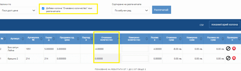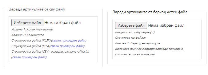 - да импортирате .csv, .xls, .xlsx файлове – в таблицата посочвате единствено артикулния номер и намереното количество;