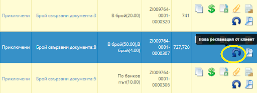 Ако направите рекламация към операцията с издължаването, това се случва от икона Рекламация. При крайната фактура се генерират: